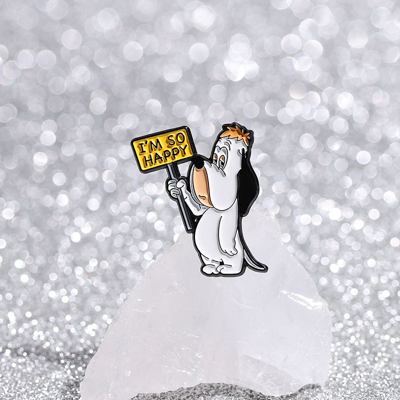Cartoon Cute Dog I’m So Happy Enamel Pins Funny Animation Brooches Backpack Lapel Badge Animal Jewelry Gifts for Kids Friends