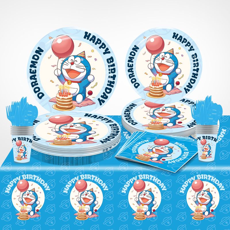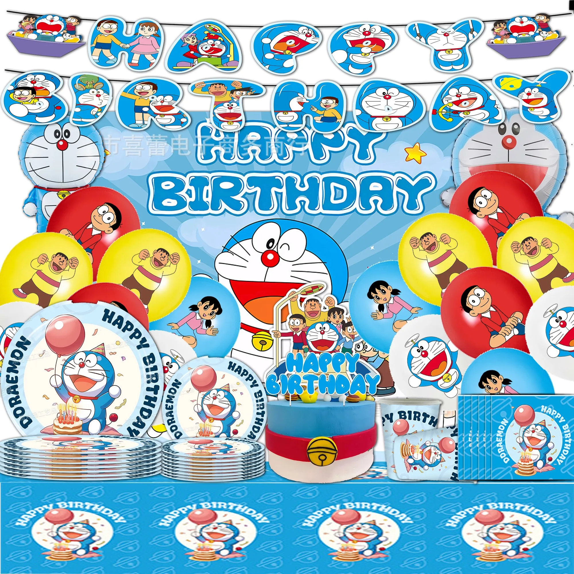 Cartoon Doraemon Birthday Party cutlery plate Disposable Banner Cake Topper Hanging Flag Doraemon Balloons Birthday Decoration