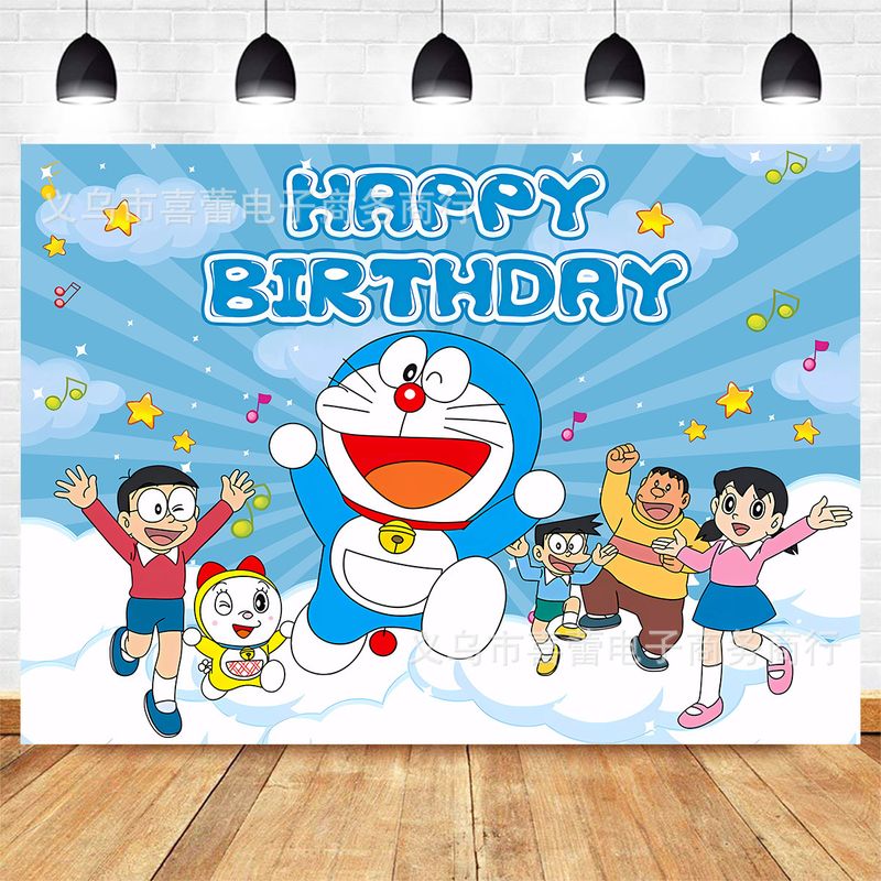 Cartoon Doraemon Birthday Party cutlery plate Disposable Banner Cake Topper Hanging Flag Doraemon Balloons Birthday Decoration