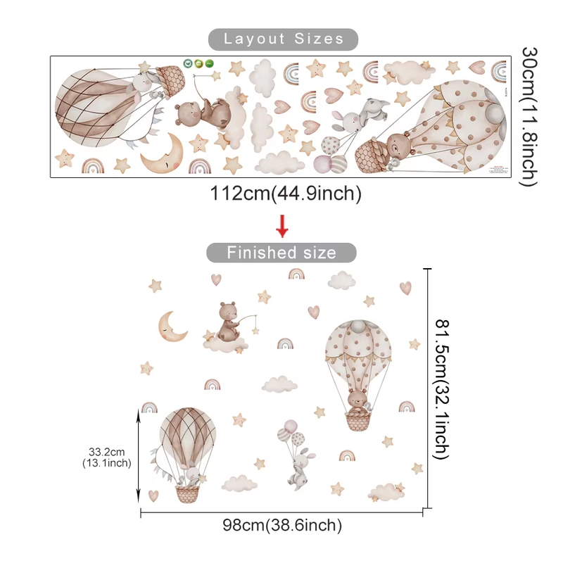 Cartoon Hot Air Balloon Animals Bear Rabbits Wall Stickers for Child Room Boy Room Decoration Nursery Baby Room Decoration Decal
