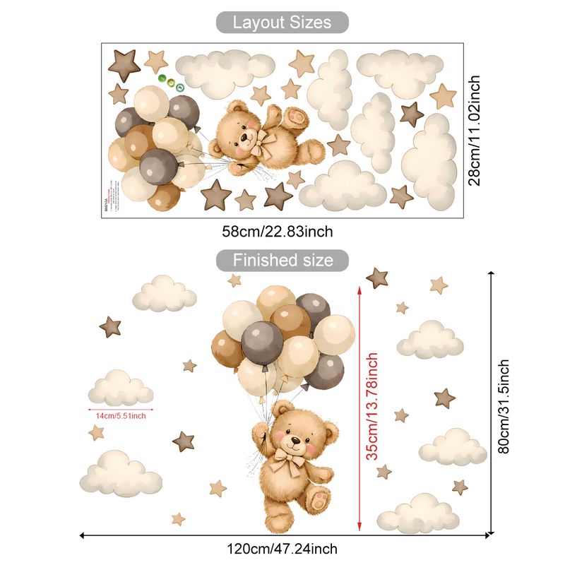 This wall sticker features cute animals as the protagonists, with bunnies flying in the sky on hot air balloons, bears and monkeys playing on the clouds, and gentle moons and twinkling stars. Such a unique design is a dreamy standard for children's rooms, which can instantly put children in a fairy tale world; used in the bedroom, it can create a warm and romantic atmosphere to help you have sweet dreams every night; placed in the living room, it can also become an eye-catching highlight, adding agility and fun to the space. Moreover, it adopts a convenient tearable and stickable design, which can be easily pasted and removed, and the decoration layout can be changed at will.