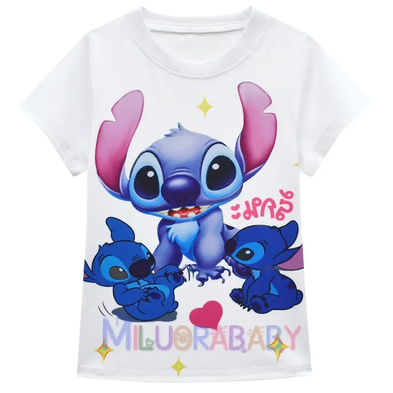 Cartoon Kids Girls Dresses Stitch Girls T-shirt + Skirt Bag Princess Casual Dress Children Cartoon Birthday Party Clothes Set