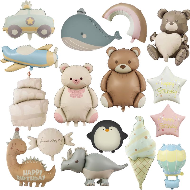 Cartoon Matte Bear theme Foil Balloons Rainbow Cake Car Plane Toy Kids Baby Shower Party Birthday Decor Para Fiesta Gifts