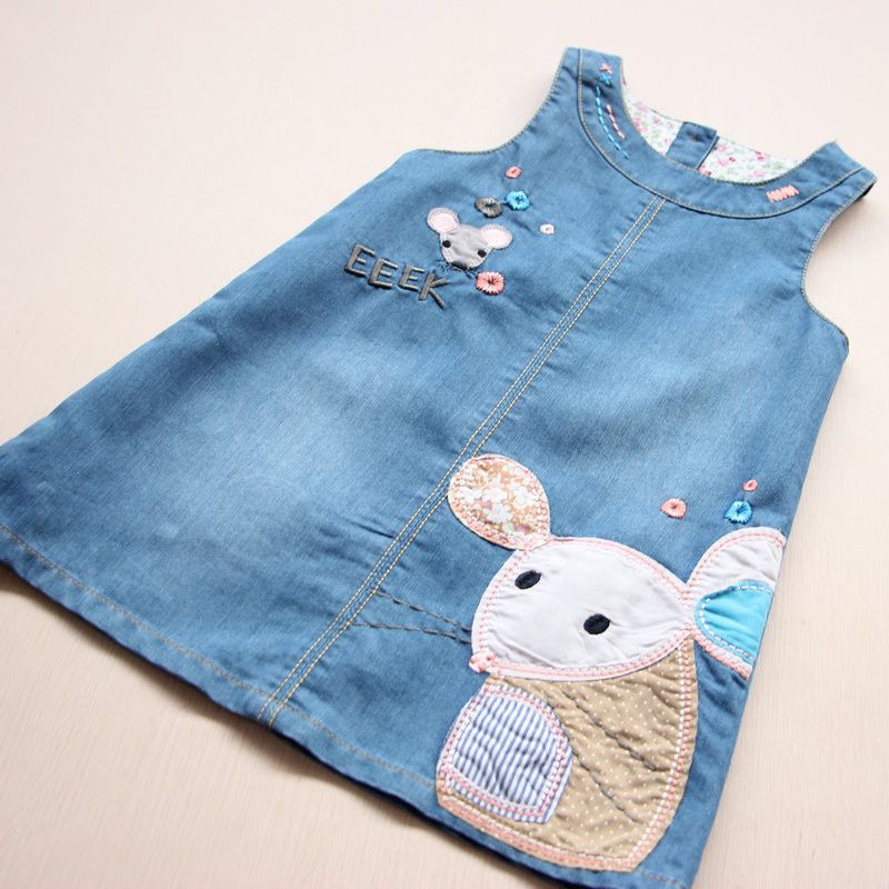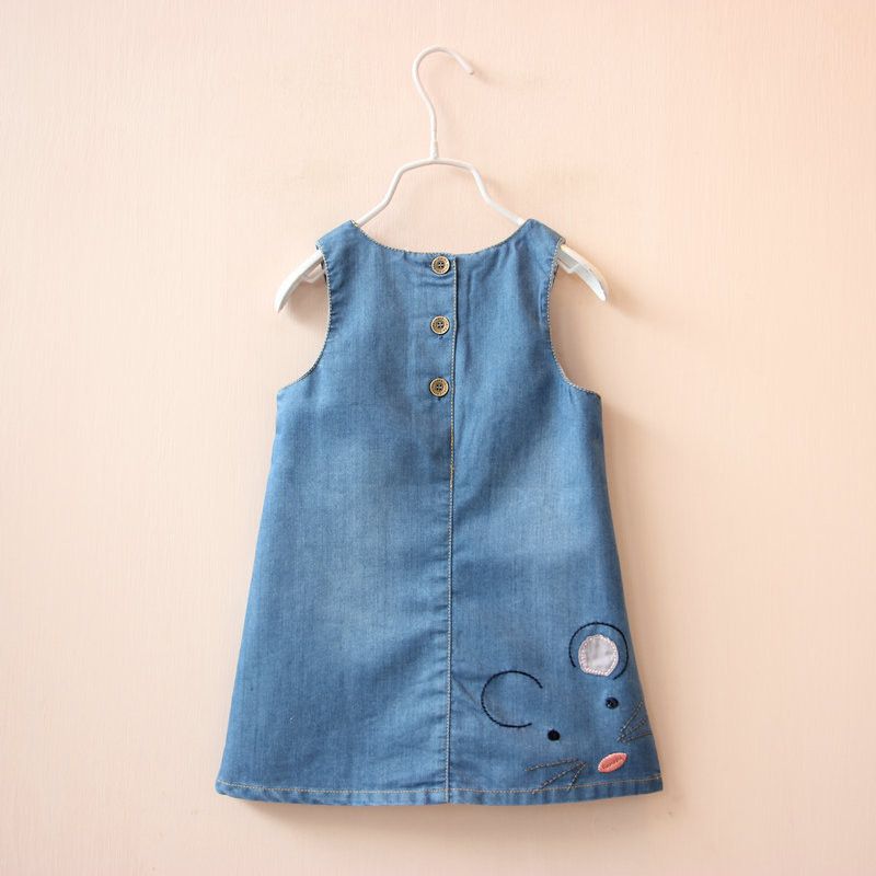 Cartoon Mouse Embroidery Little Girls Summer Denim Dress Cozy Sleeveless A-line Kids Dresses For Toddler Girl Clothing 2-6 Yrs