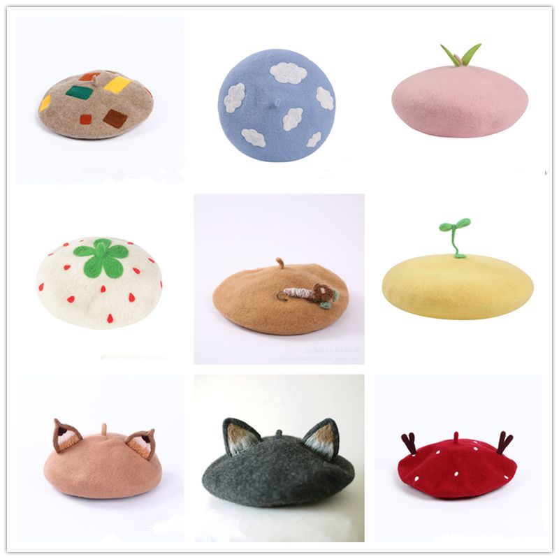 Color classification: Dark Grey Ears, Khaki Yarn Flower, Peach, White Straw Hat, Khaki Ears, Wine Red Deer Horn, Clouds, Checkers