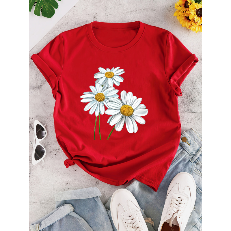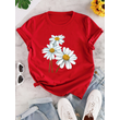 Cartoon Print T-Shirt, Summer Short Sleeve Casual Top Red L