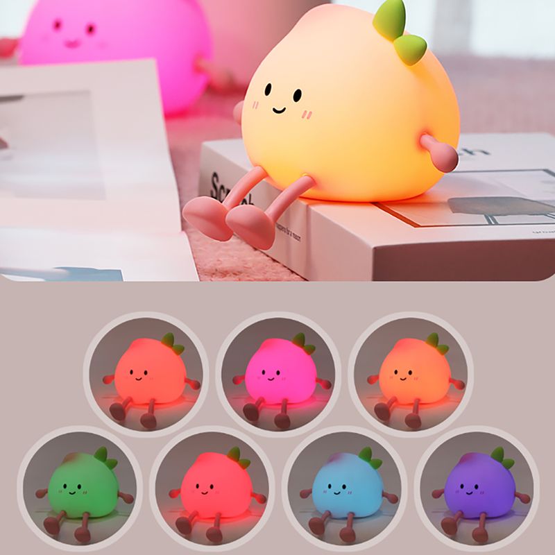 Cartoon Silicone Peach Sleep Lamp,USB ReChargable, LED Night Light for Children Holiday Gift, Cute Bedside Decor