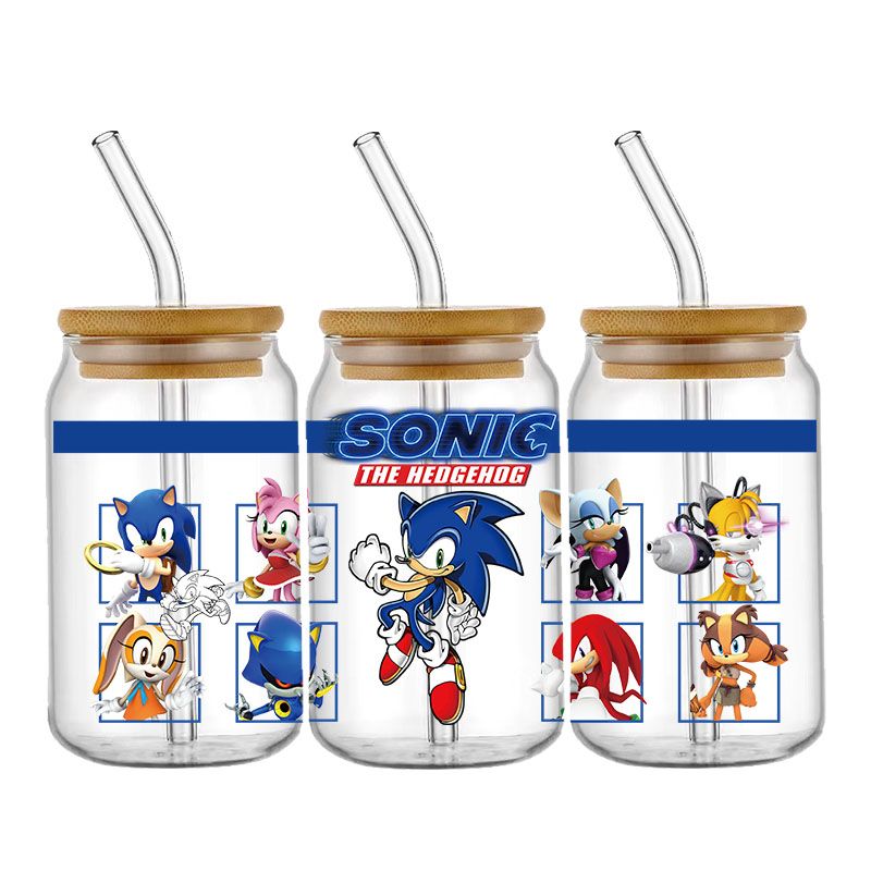 Cartoon Sonic The Hedgehog UV DTF Cup Wrap Transfers Stickers For 16oz Libbey Glass Can Personalize Waterproof Selfadhesive