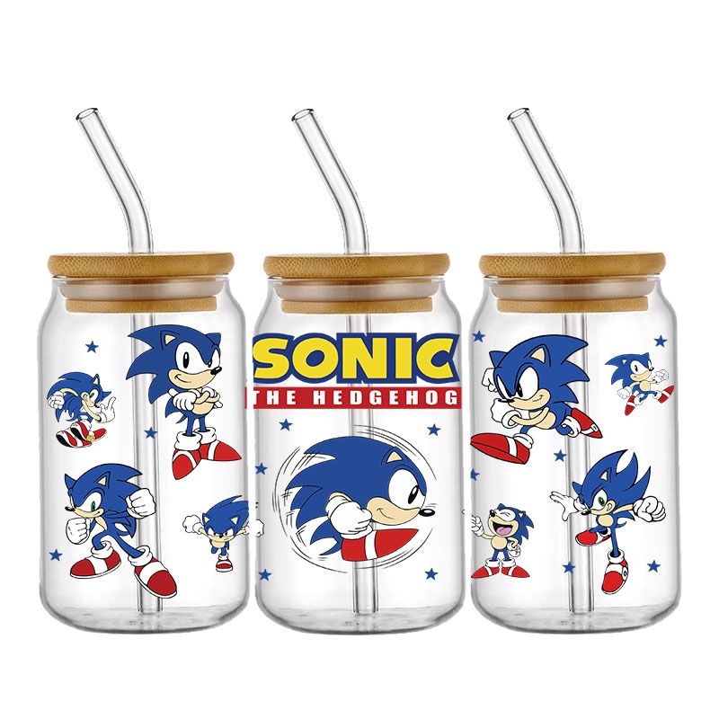 Cartoon Sonic The Hedgehog UV DTF Cup Wrap Transfers Stickers For 16oz Libbey Glass Can Personalize Waterproof Selfadhesive