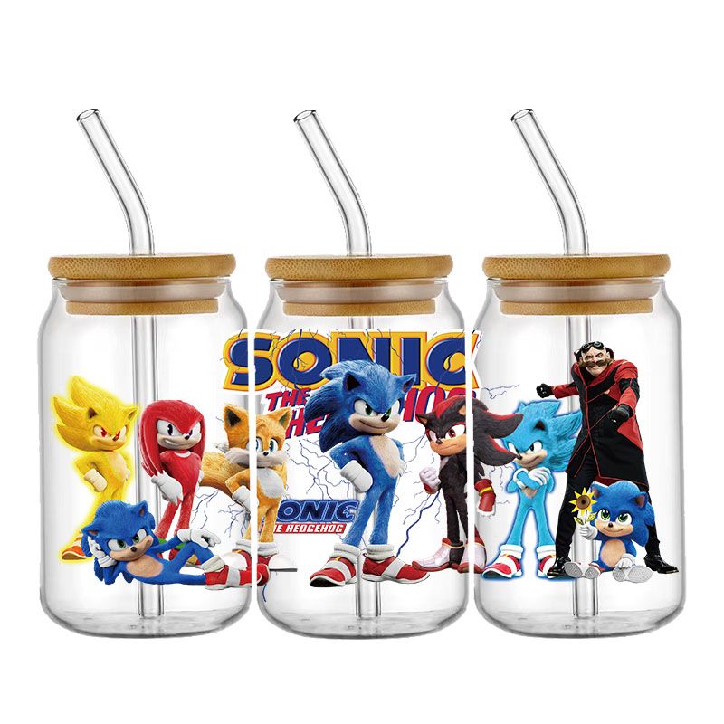 Cartoon Sonic The Hedgehog UV DTF Cup Wrap Transfers Stickers For 16oz Libbey Glass Can Personalize Waterproof Selfadhesive