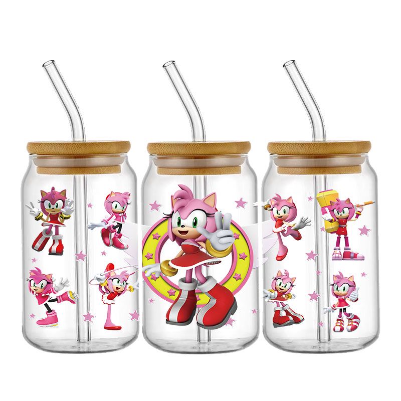 Cartoon Sonic The Hedgehog UV DTF Cup Wrap Transfers Stickers For 16oz Libbey Glass Can Personalize Waterproof Selfadhesive