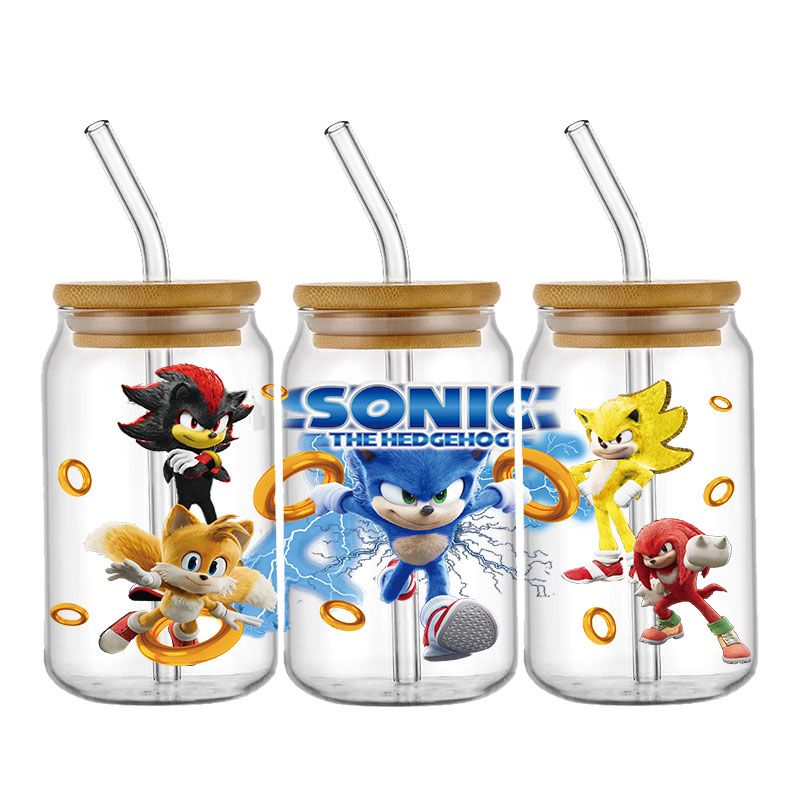 Cartoon Sonic The Hedgehog UV DTF Cup Wrap Transfers Stickers For 16oz Libbey Glass Can Personalize Waterproof Selfadhesive