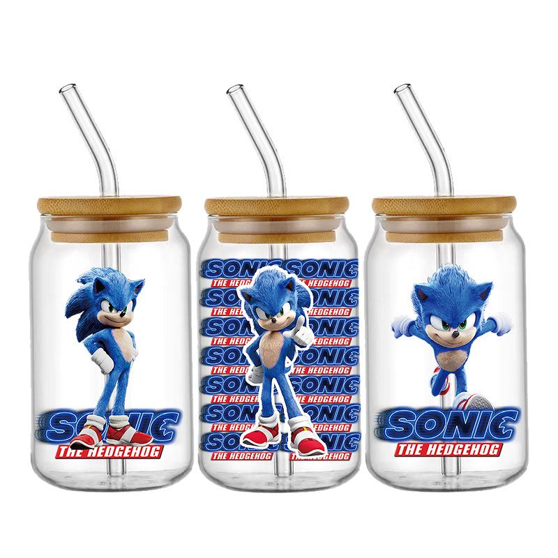 Cartoon Sonic The Hedgehog UV DTF Cup Wrap Transfers Stickers For 16oz Libbey Glass Can Personalize Waterproof Selfadhesive