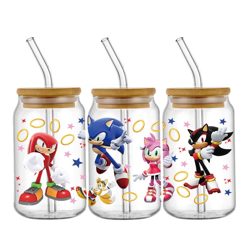 Cartoon Sonic The Hedgehog UV DTF Cup Wrap Transfers Stickers For 16oz Libbey Glass Can Personalize Waterproof Selfadhesive