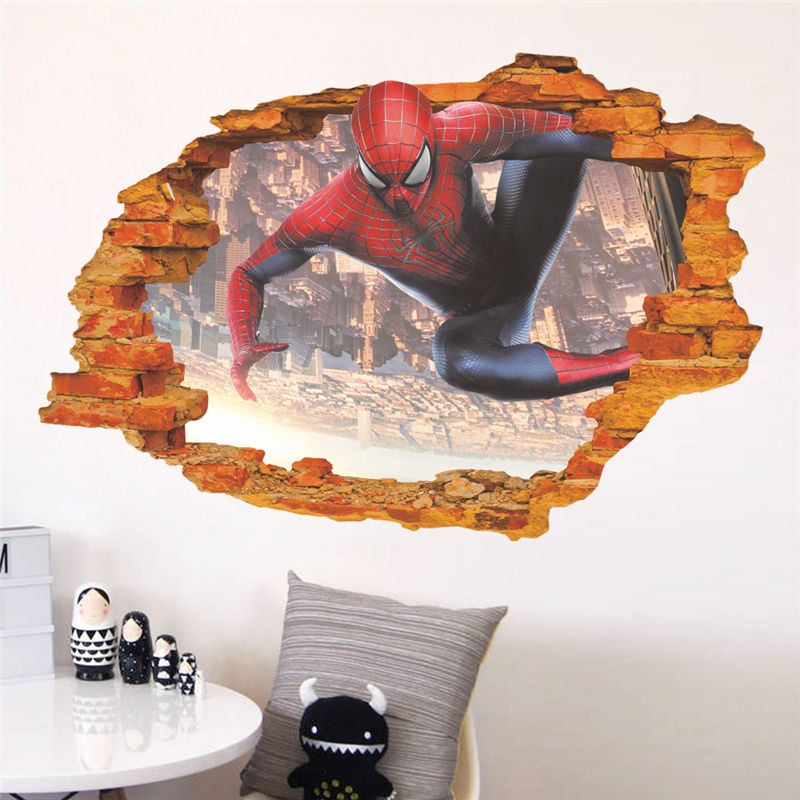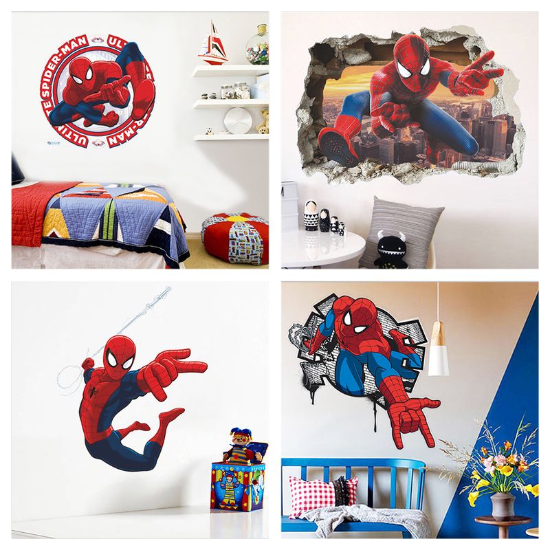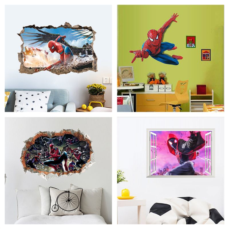 Cartoon Spiderman Wall Stickers For Kids Room Home Decoration 3d Super Hero Avengers Mural Art Boys Decals Anime Movie Poster