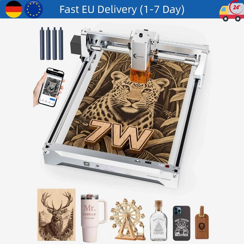 Optional 12W high-power diode for fast and deep engraving, cutting.