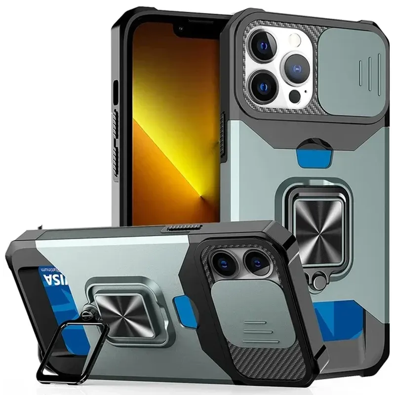 Case For iPhone 17 16 15 14 13 12 Pro Max Plus 8 7 Plus Mini Heavy Duty Protection With Sliding Camera Cover And Card Clip Cover