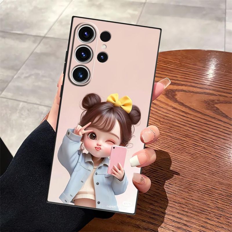 Case for Samsung Galaxy S25 Edge S21 FE S20 S23 Ultra S24 Plus Black Soft Phone Cover Cartoon Girl Pattern