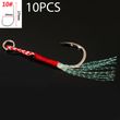 Cast Jig Assist Hook 10PCS/Lot High Carbon Steel Angle Barbed Thread Feather Lake Fishing Tackle Slow Jigging Sea Pesca Fishhook