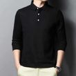 Casual And Comfortable Fashion Classic Solid Color Long Sleeve Lapel Polo Shirt Black 2XL