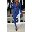 Casual Blazer Suit Slim Lapel Double-breasted Jacket And Zip-up Trousers Women's Clothing Blue XL