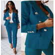 Casual Blazer Suit Slim Lapel Double-breasted Jacket And Zip-up Trousers Women's Clothing Dark Green S