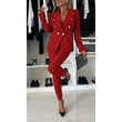 Casual Blazer Suit Slim Lapel Double-breasted Jacket And Zip-up Trousers Women's Clothing Red S