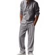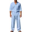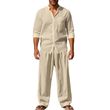 Casual Breathable Long Sleeves Trousers Shirt Beach Suit Khaki XL