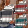 Casual Button Striped Long Sleeve Women's T-shirt Red L