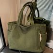 Casual Corduroy Handbag with Zipper Closure Light and Large Capacity Fixed Shoulder Strap Solid Color Daily Commuter Handbag