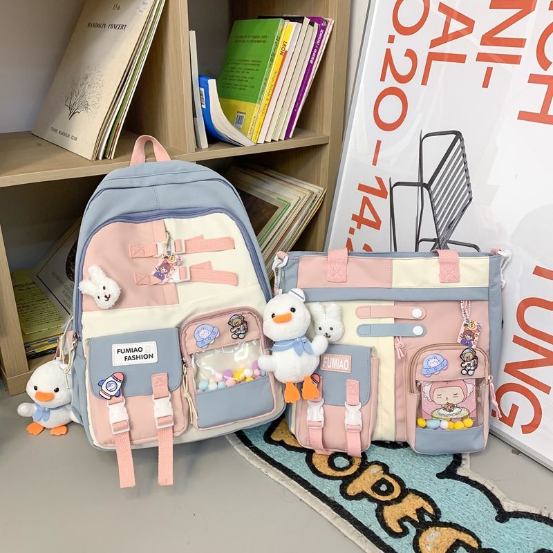 Casual Fashion Color Contrast Backpack Blue without pendant