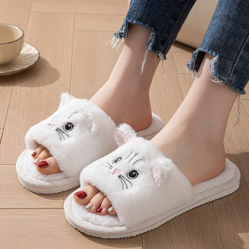 The embroidered cat cartoon design adds a touch of fun and elegance, making these slippers stand out.