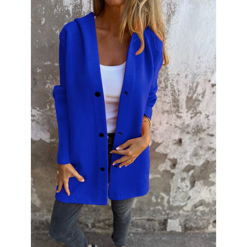 Casual Hooded Single-Breasted Cardigan Fashion Loose Solid Color Jacket Spring And Autumn Women's Clothing Blue S