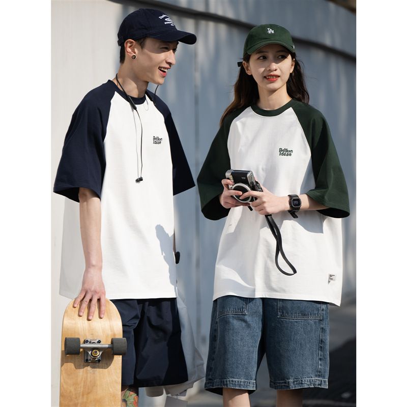 Casual Japanese Junior Raglan Sleeve T-shirt Bottoming Shirt For Men Green XL