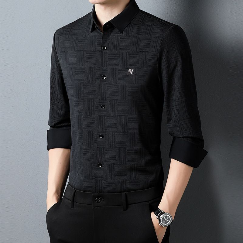 Casual Long Sleeve Lapel Seamless Adhesive Shirt Black 2XL
