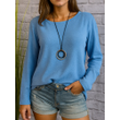 Casual Long Sleeve Round Neck Regular Solid Color Multi-color Women's Top Blue S