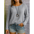 Casual Long Sleeve Round Neck Regular Solid Color Multi-color Women's Top Gray S