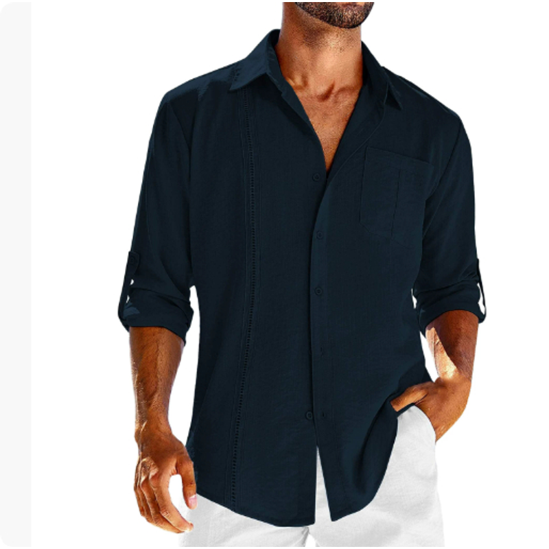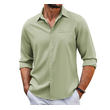 Casual Long Sleeve Shirt With Pocket Lace Polo Collar Solid Color Button Mens Clothing Set L