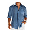 Casual Long Sleeve Shirt With Pocket Lace Polo Collar Solid Color Button Mens Clothing White S