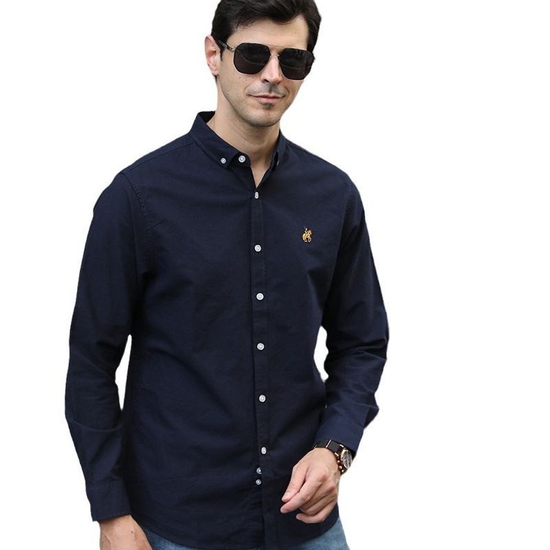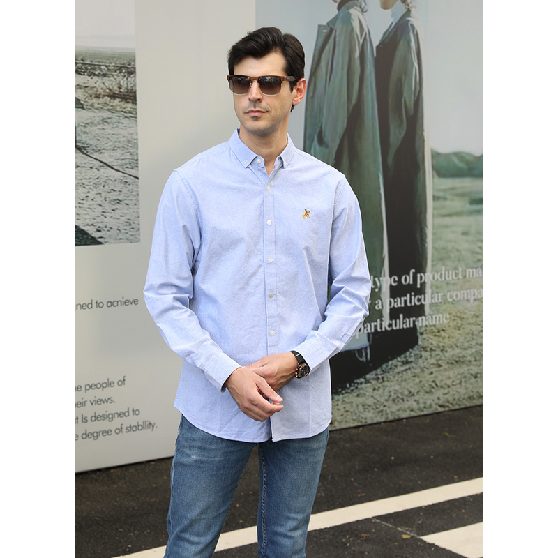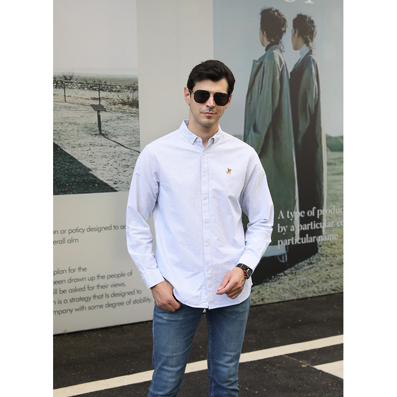 Casual Long-sleeved Shirt Plus Size Men Blue Stripes XXL