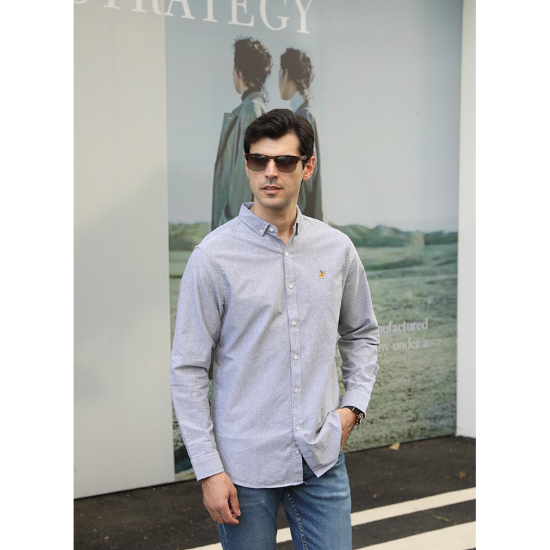 Casual Long-sleeved Shirt Plus Size Men Gray L