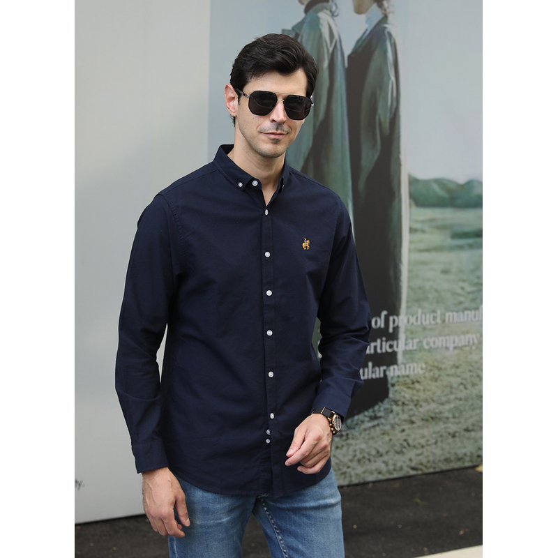 Casual Long-sleeved Shirt Plus Size Men Navy Blue XXXL