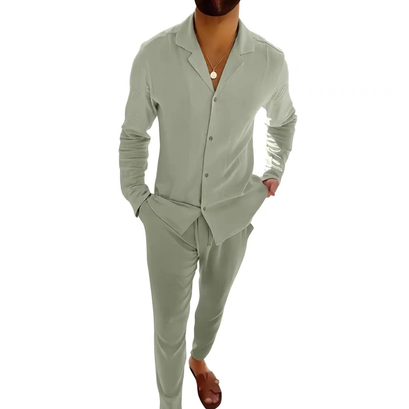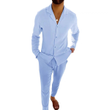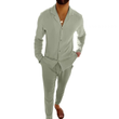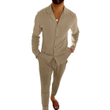 Casual Long-sleeved Suits Fashion Lapel Single-breasted Shirt Top And Slim-fit Trousers Men Clothing Beige Pants S