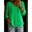 Casual Loose Fashion Cotton And Linen Long Sleeve V-neck Buttons Shirt Green M