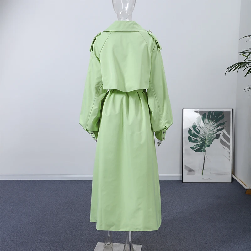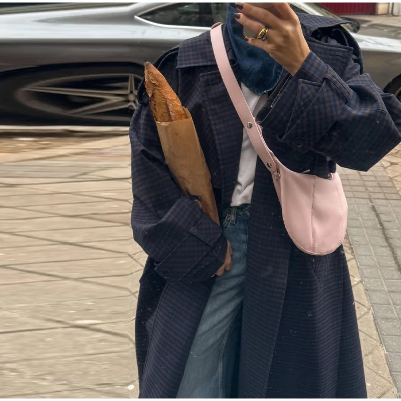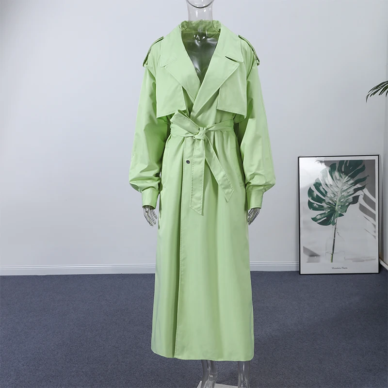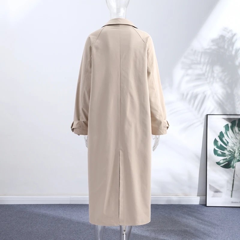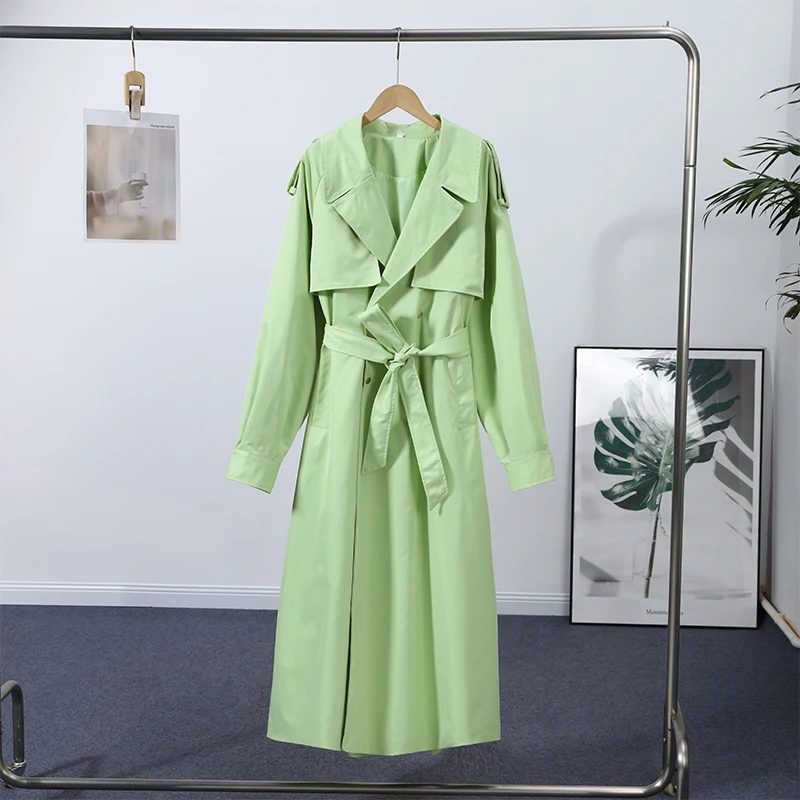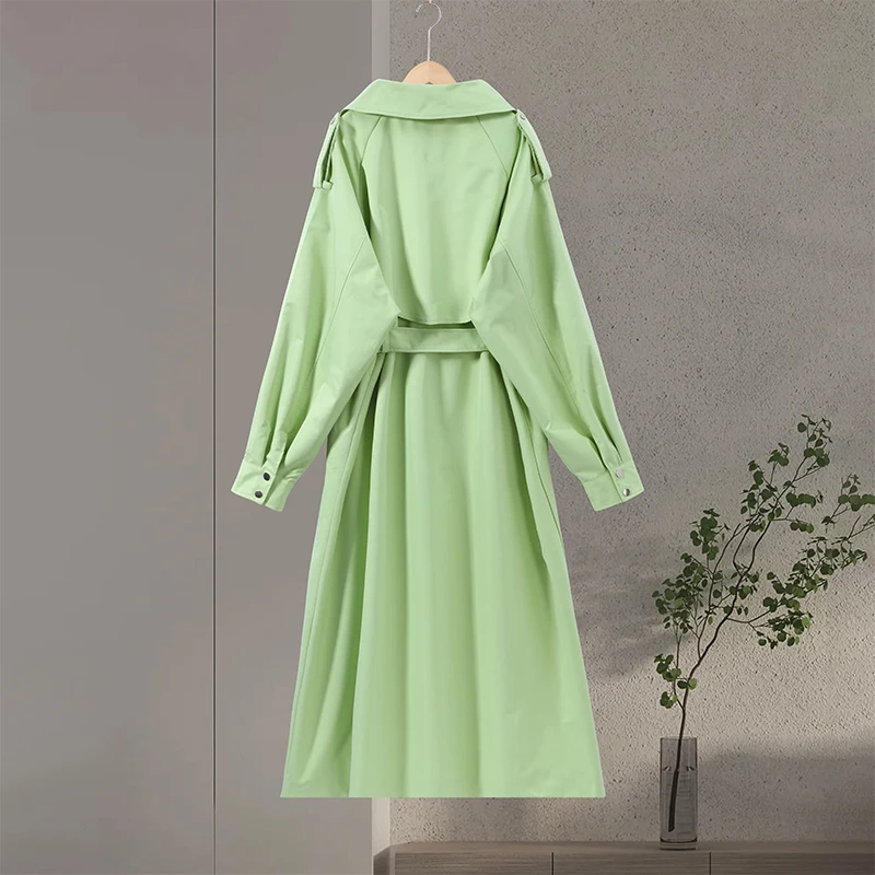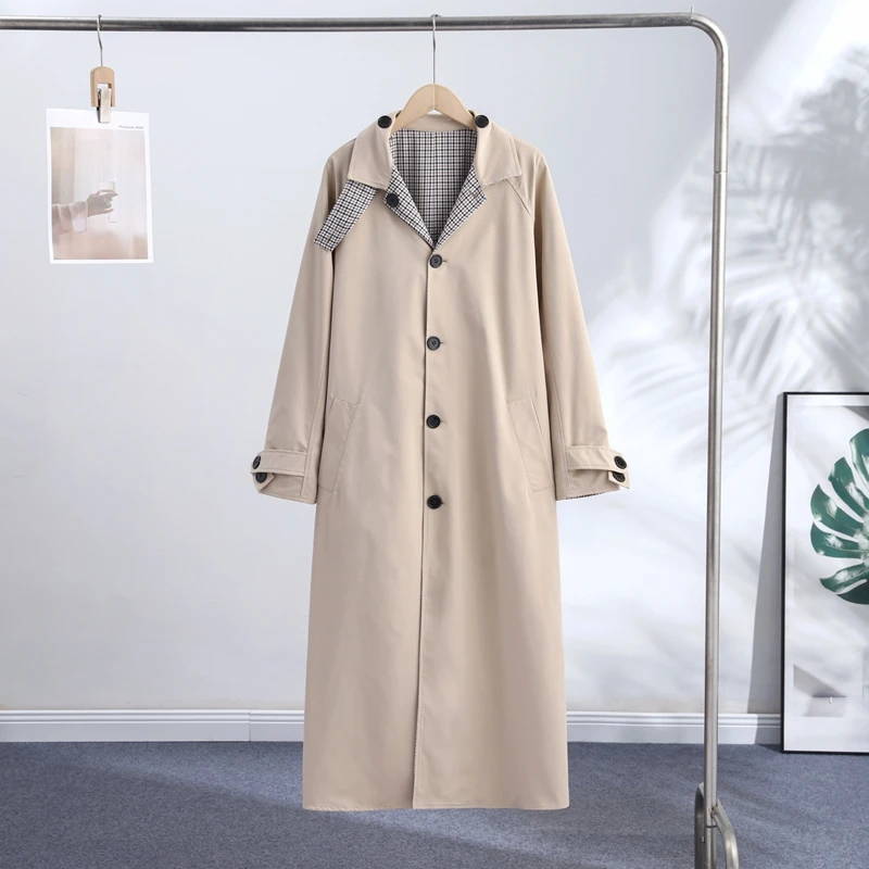 Casual Loose Long Plaid Coat Women Chic Full Sleeve Double Breasted Belt Lapel Coat Female 2026 Spring Street Outwear Lady