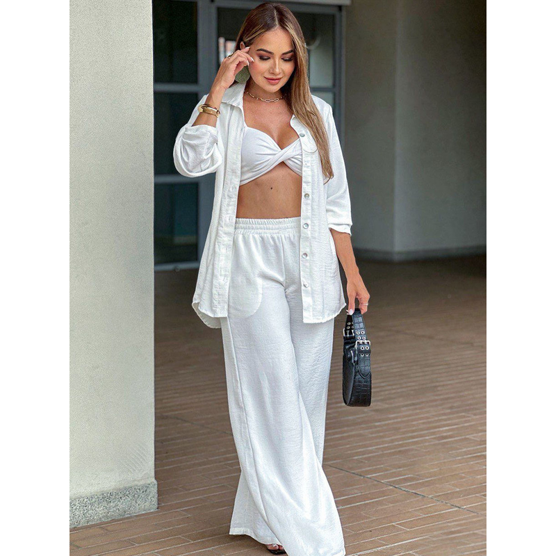 Casual Loose Trousers Women's Shirt Fashion Suit White S