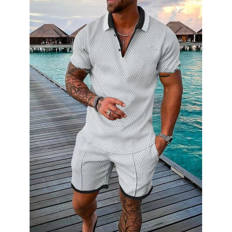 Casual Men's European And American Fashion Men's Polo Shirt Suit Light Green XL