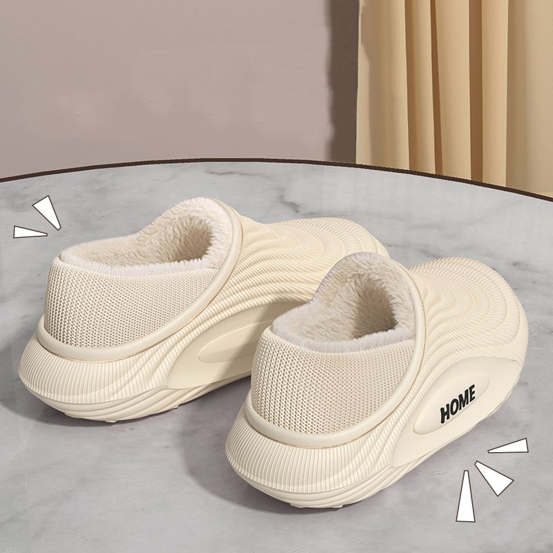 Casual Men‘s Warm Plush EVA Slippers Winter Platform Waterproof Indoor outdoor Shoes Woman Non Slip Furry Home Slippers