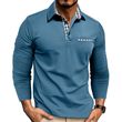 Casual Plaid Splicing Lapel Polo Shirt Fashion Solid Color Long Sleeve Top Men's Clothing Light Blue XXXL
