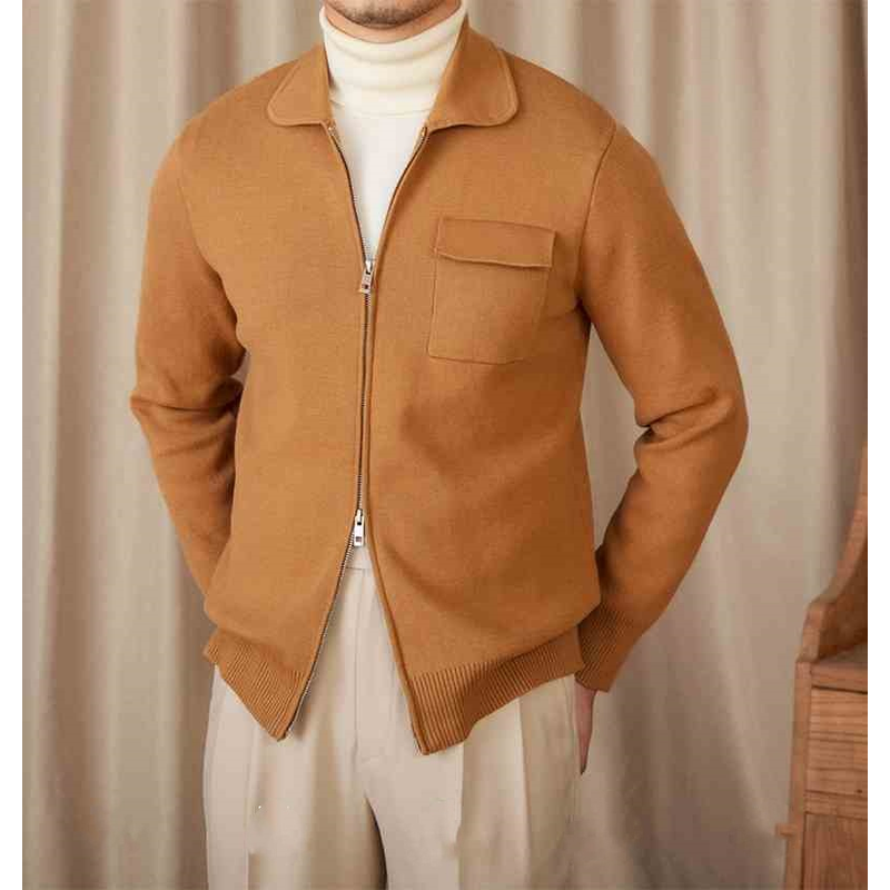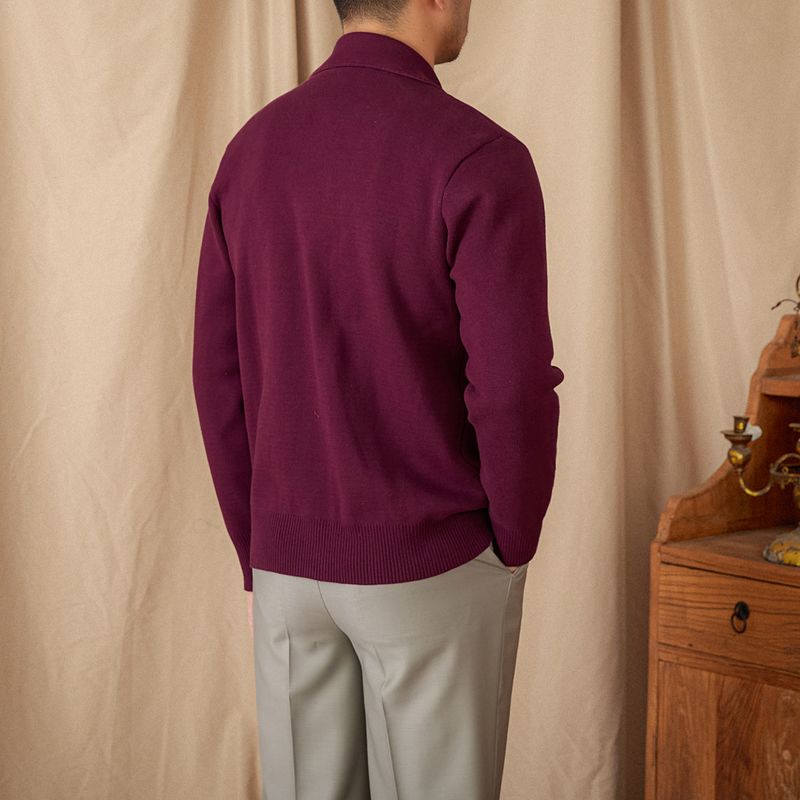 Casual Polo Collar Long Sleeve Coat Knitted Cardigan Purplish Red 3XL